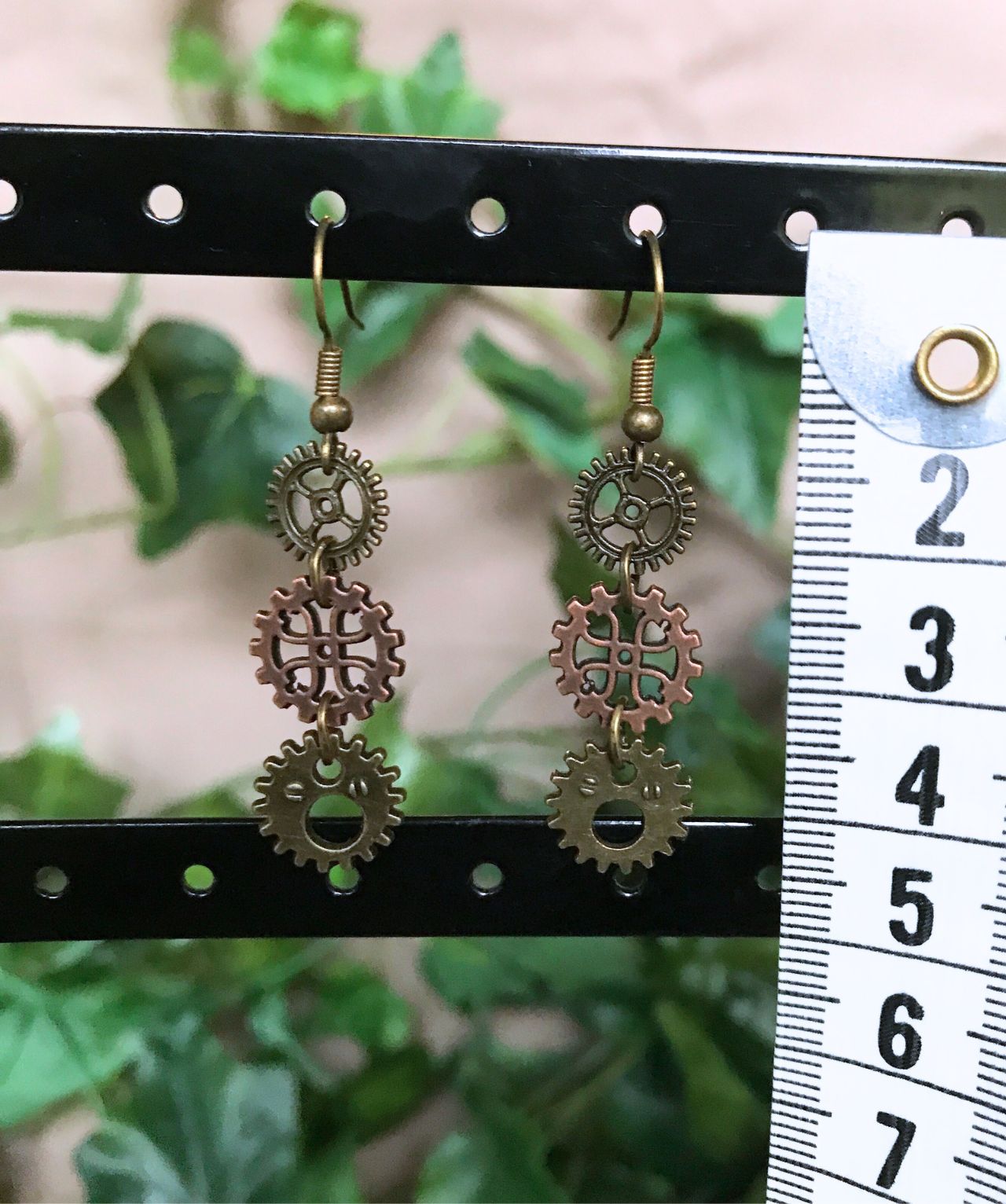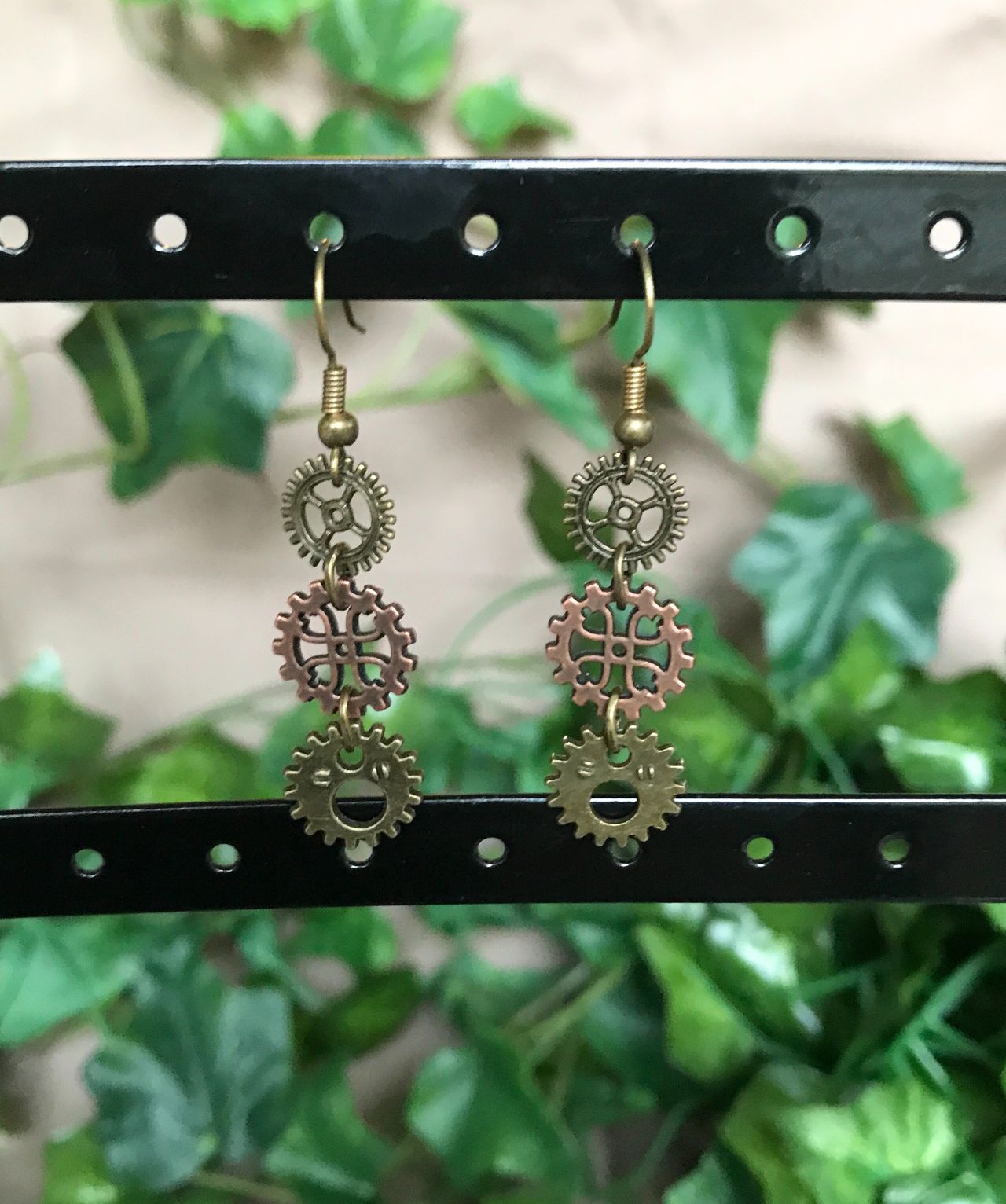Smukke steampunk øreringe med forskellige kobber- og bronzefarvede tandhjul.